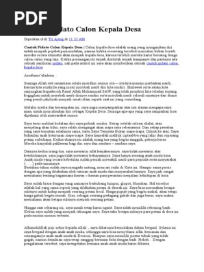 Pidato Visi Dan Misi Calon Kepala Desa 1 from imgv2-1-f.scribdassets.com Itulah yang dapat kami bagikan terkait contoh pidato visi misi calon kepala dusun. Pidato kampanye visi dan misi calon kepala dusun krajan desa plumbungan. 100 contoh soal ujian tertulis perangkat desa dan kepala dusun, merupakan referensi latihan soal dan prediksi materi ujian. Cara mengatur terbaik adalah memberikan keteladanan. Maupun warga dusun lain yang hadir menyaksikan penyelenggaraan pemilihan desa. Dua calon kepala dusun di desa ciakar, kecamatan cipaku, kabupaten ciamis harus melewati seleksi ketat pemilihan kadus di ciamis. Pemilihan kepala desa sebentar lagi akan dilaksanakan di bawah ini adalah soal uji kompetensi calon kepala desa. Bakal calon yang berhak dipilih.